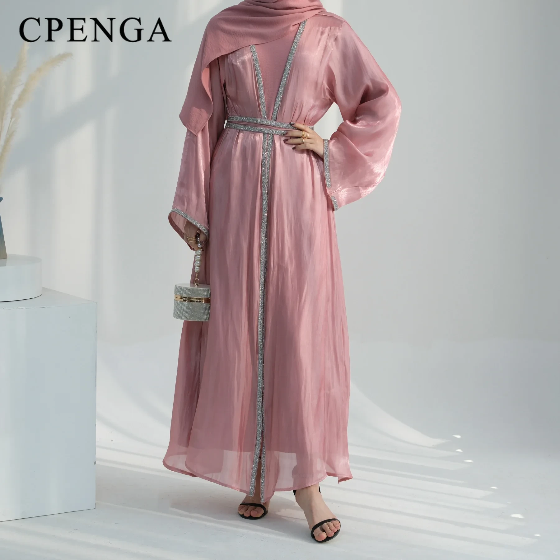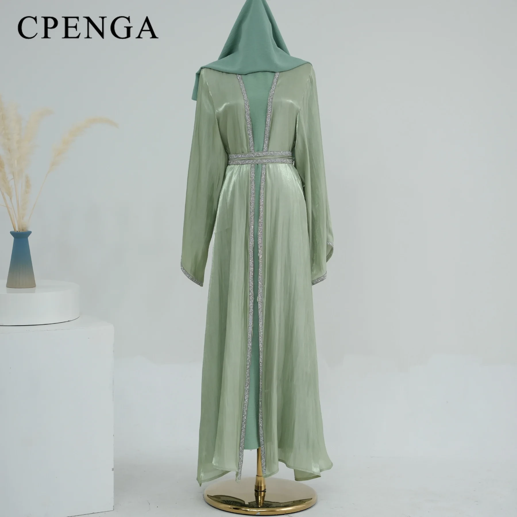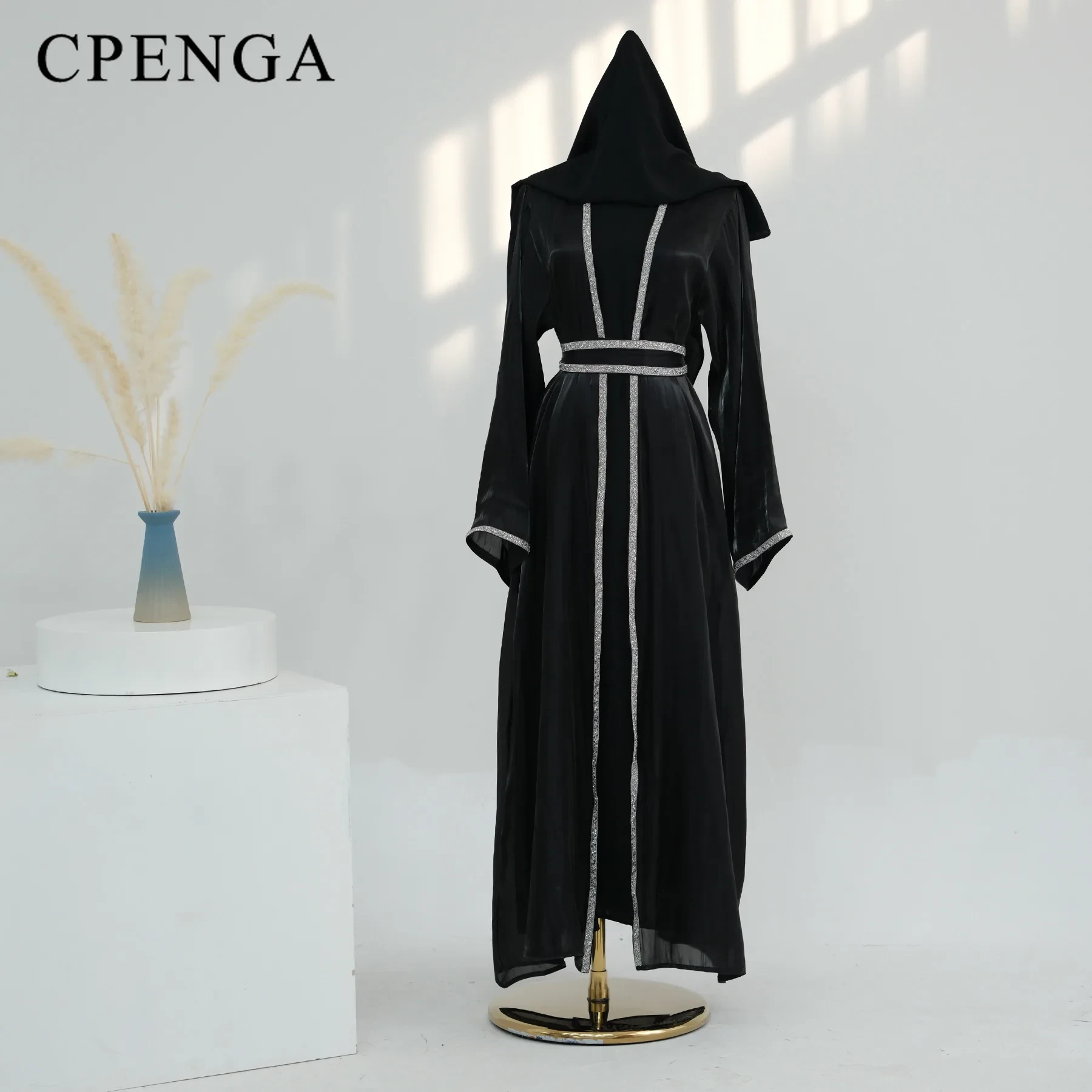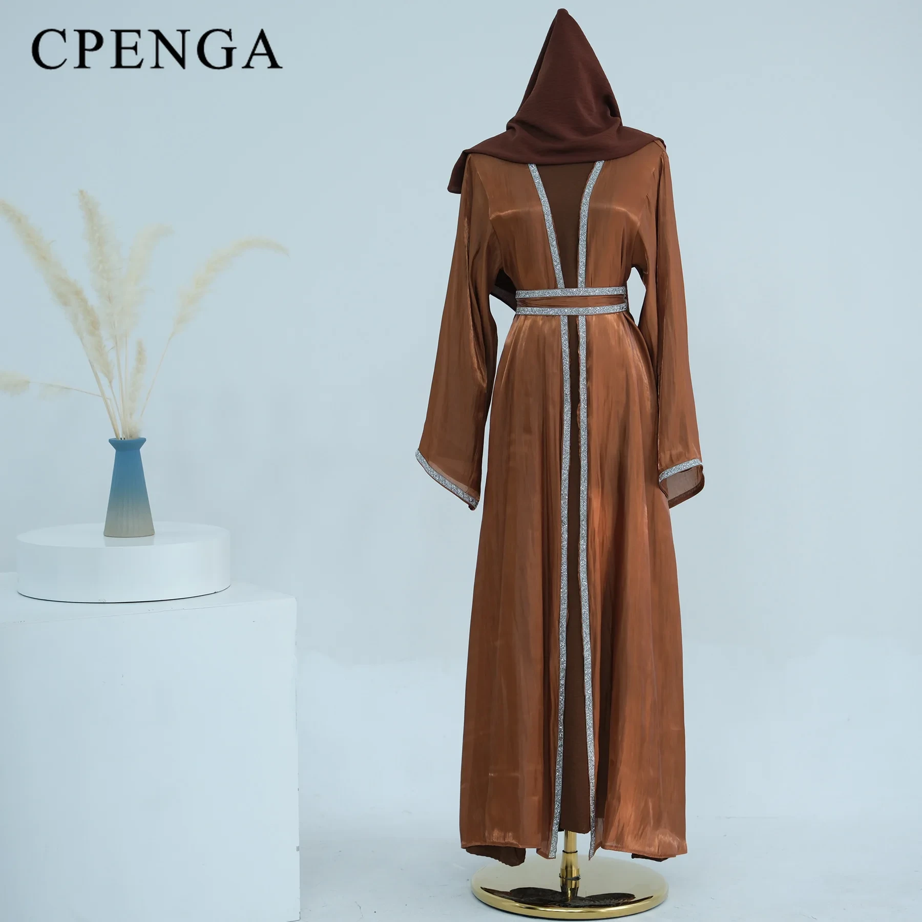 The coat is great quality Silky shiny fabric,like organza , a little see through. It's very light.
